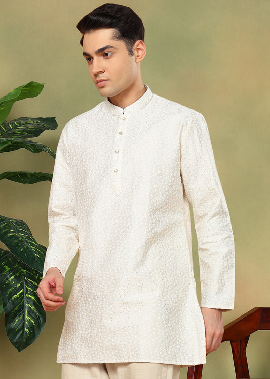 Tattva Men Self Design Cotton Blend Straight Kurta