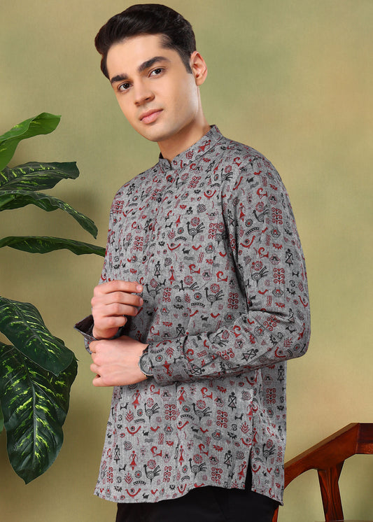 Tattva Men Warm Grey Pure Silk Solid Opaque Shirt