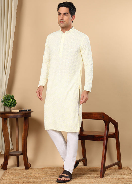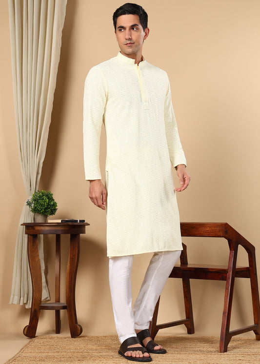 Tattva Men's Embroidered Thread Work Sequinned Kurta