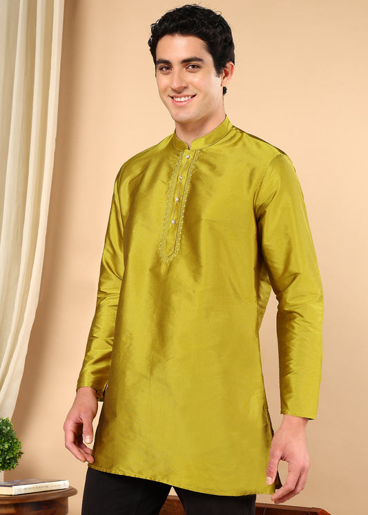 Tattva Solid Embroidered Mandarin Collar Short Kurta