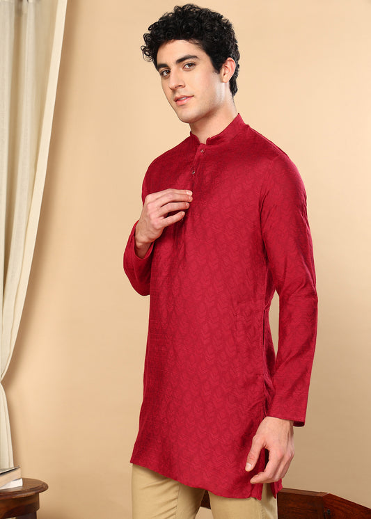 Tattva Geometric Woven Design Mandarin Collar Pure Cotton Short Kurta