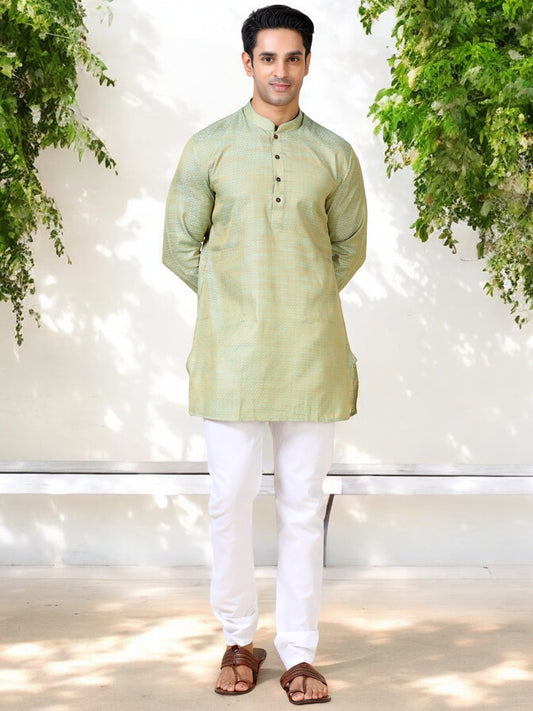 Tattva Green Color Cotton Long Kurta With Pyjamas
