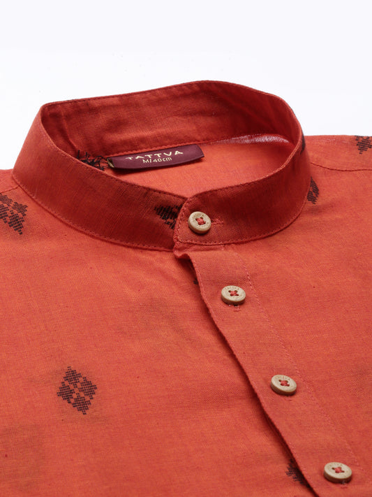 Tattva Men Woven Design Cotton Blend Straight Kurta
