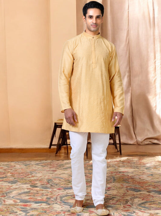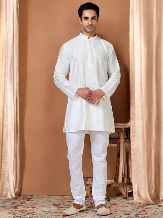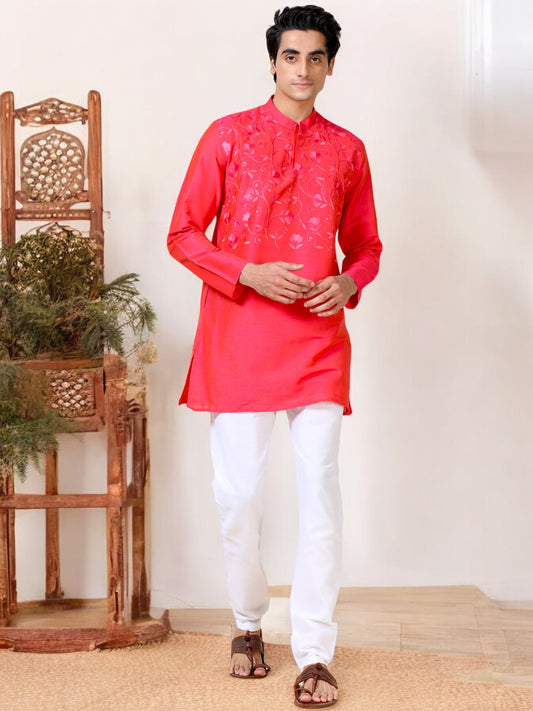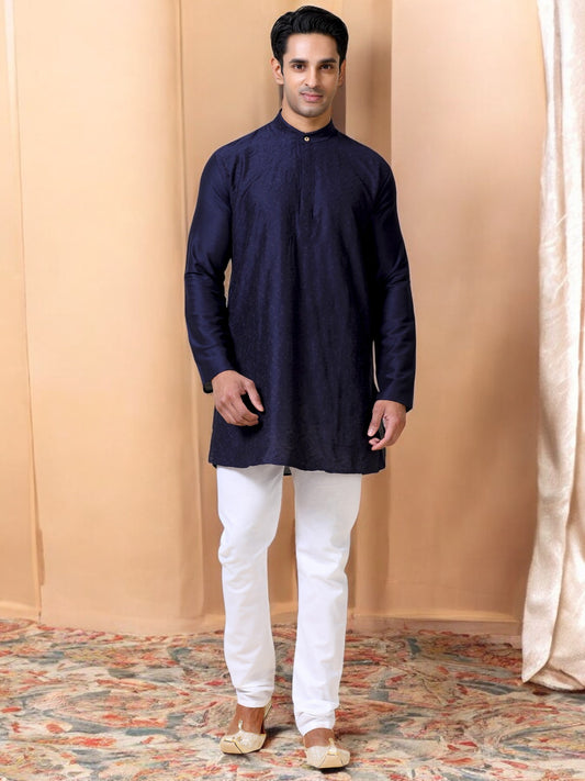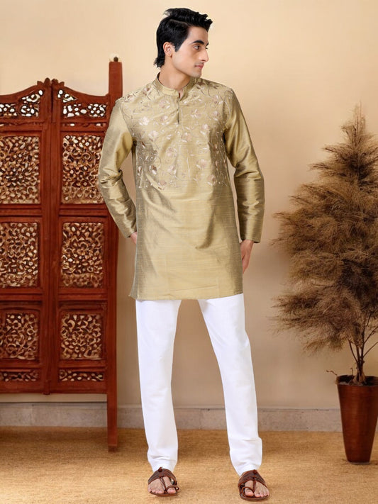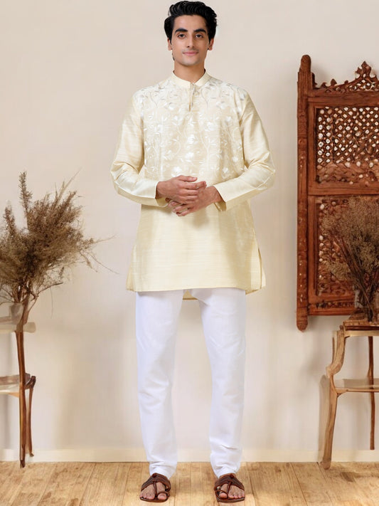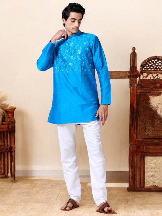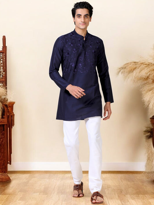 Tattva Men Embroidered Cotton Blend Asymmetric Kurta