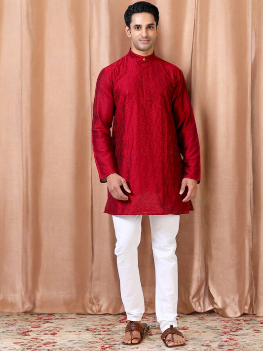 Tattva Men Embroidered Cotton Blend Straight Kurta