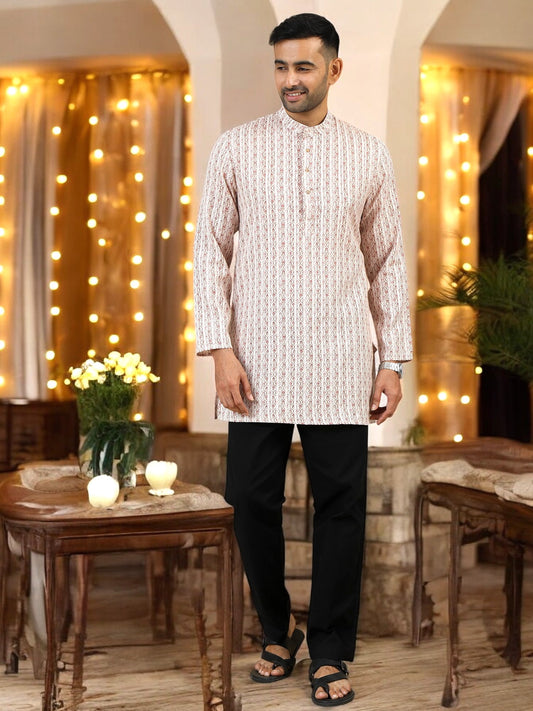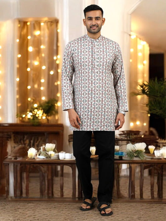 Tattva Men Multi Color Cotton Short Straight Kurta