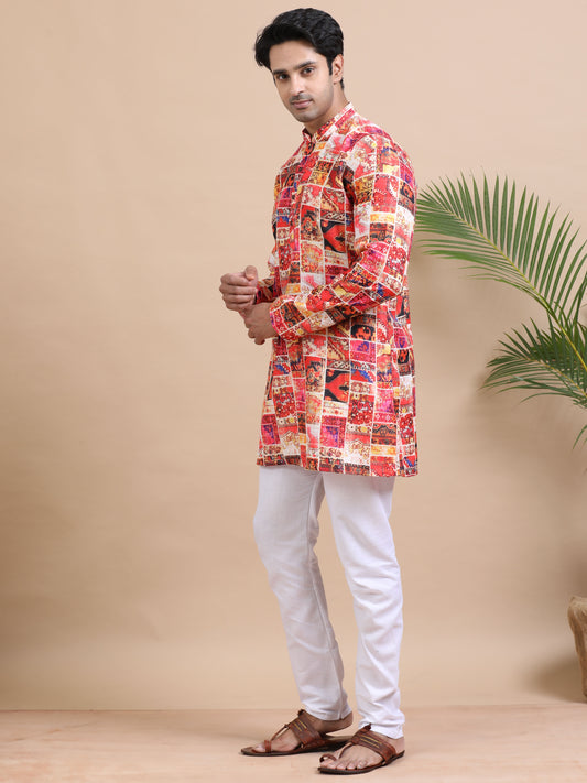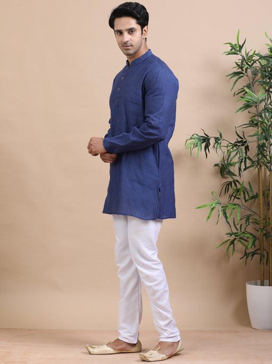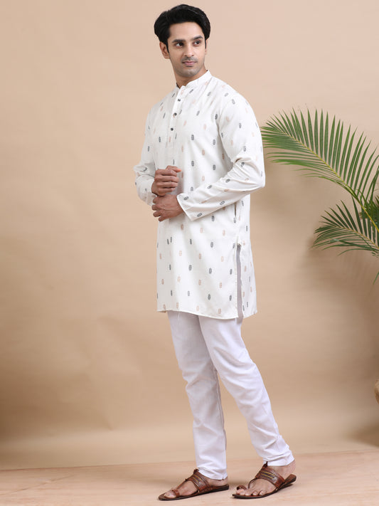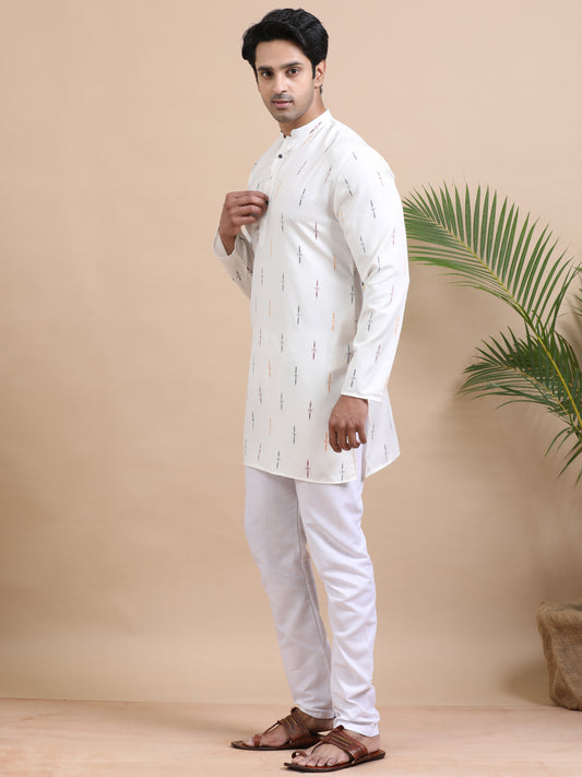 Tattva Geometric Printed Mandarin Collar Cotton Straight Short Kurta