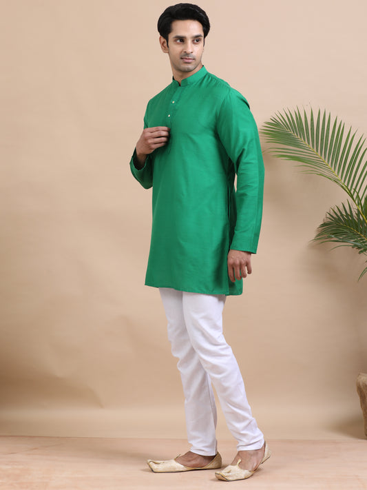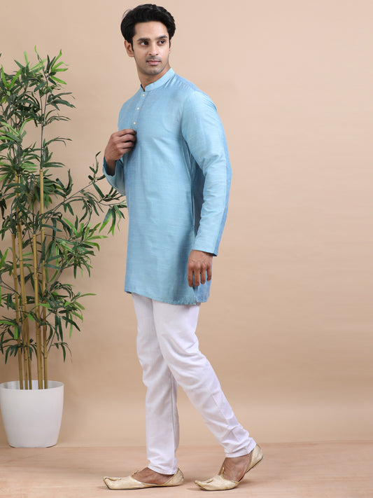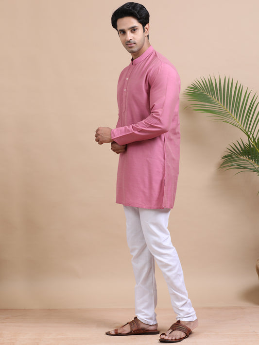 Tattva Solid Embroidered Mandarin Collar Short Kurta