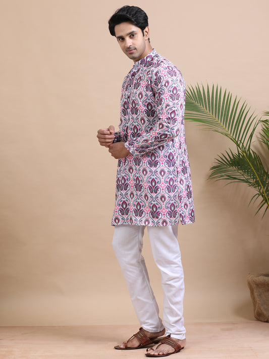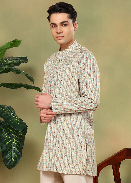 Tattva Men Floral and Striped Short Kurta