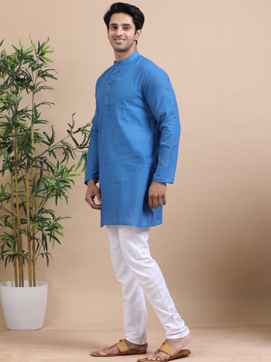 Tattva Geometric Woven Design Mandarin Collar Pure Cotton Short Kurta