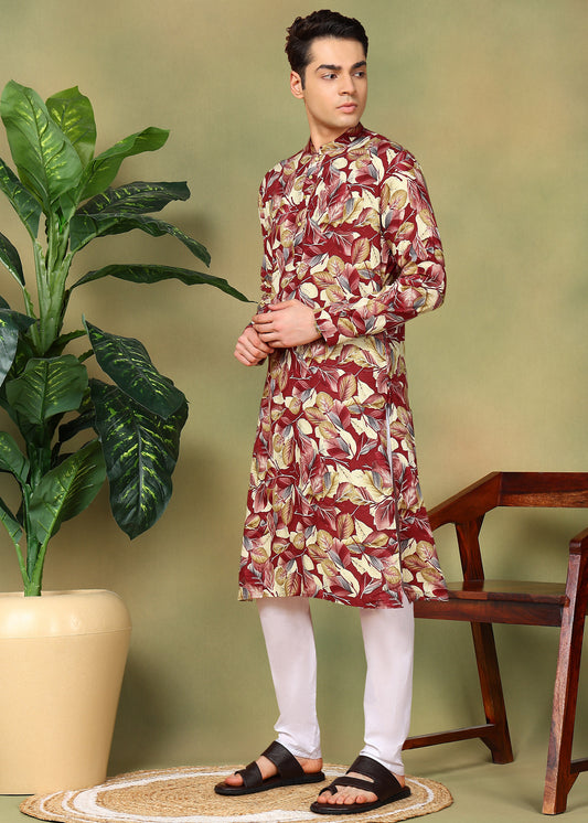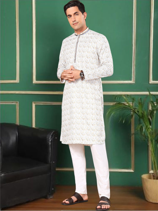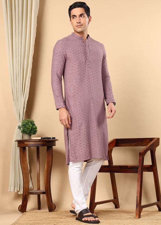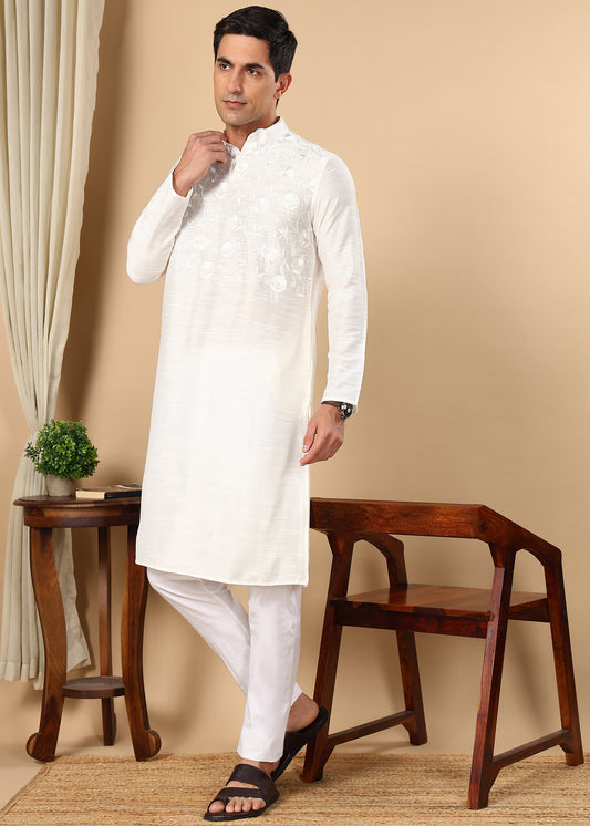 Tattva Men's Embroidered Thread Work Sequinned Kurta