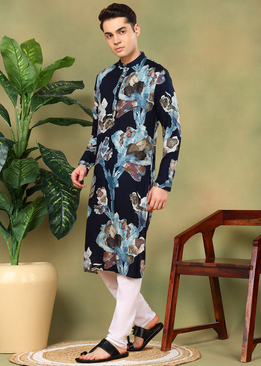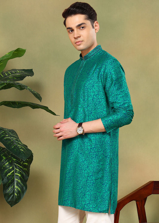 Tattva Men's Embroidered Thread Work Sequined Kurta