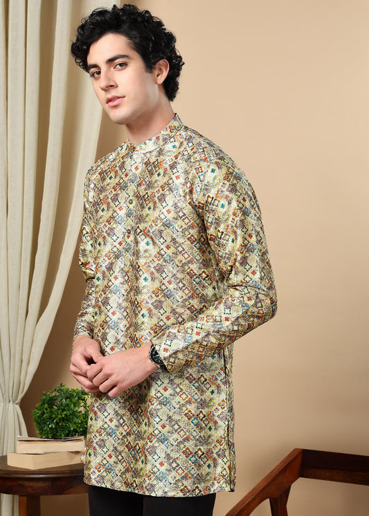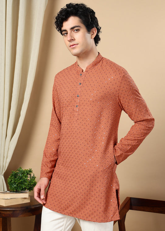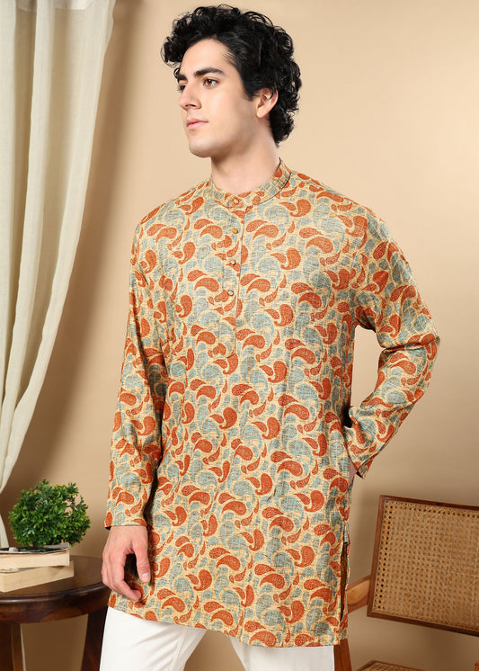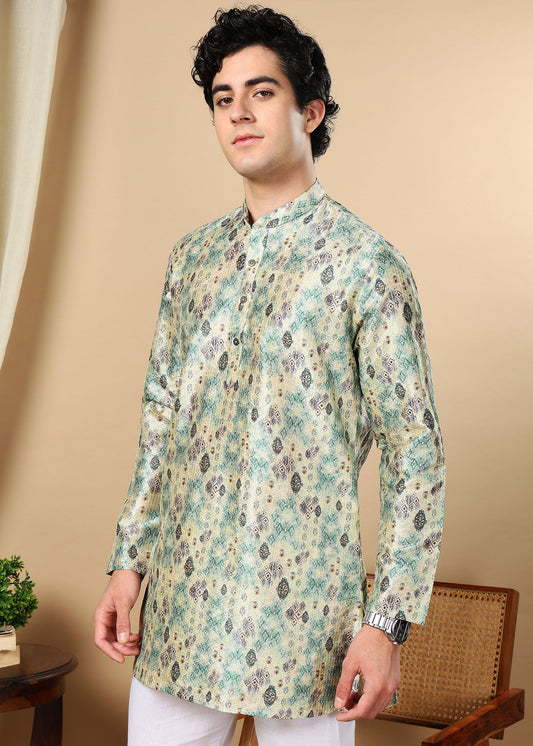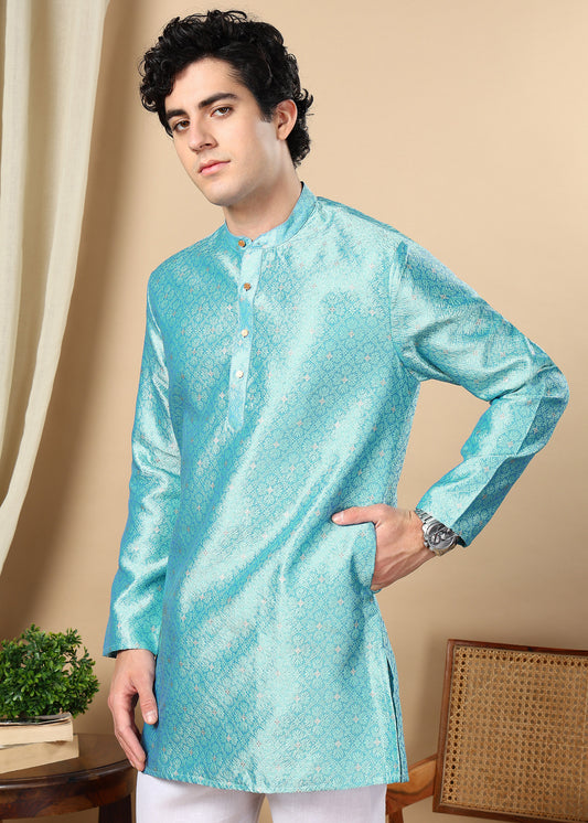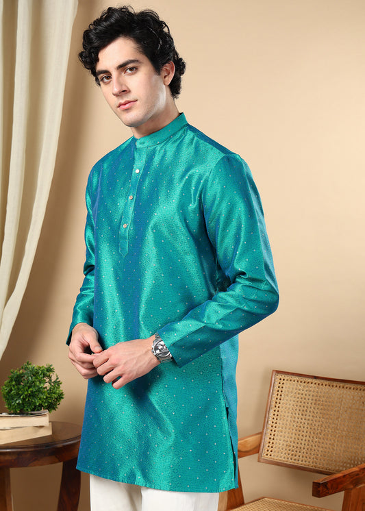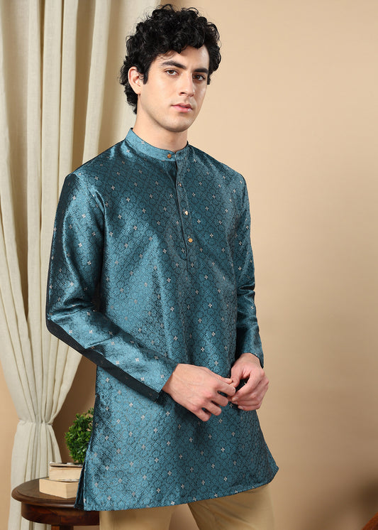Tattva Peacock Blue Toned Embellished Short Kurta