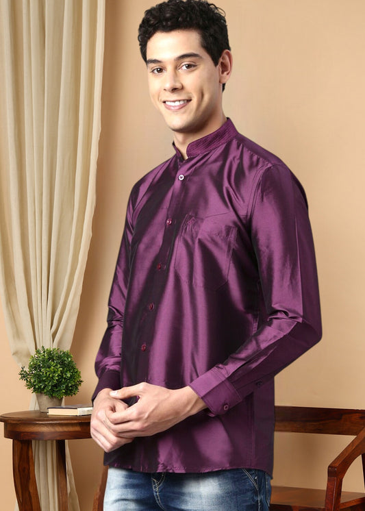 Tattva Men Regular Fit Solid Mandarin Collar Festive Shirt