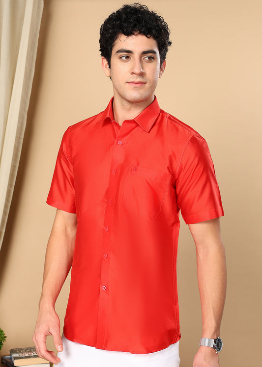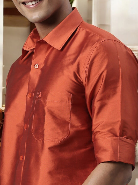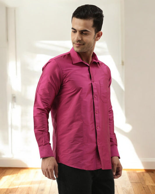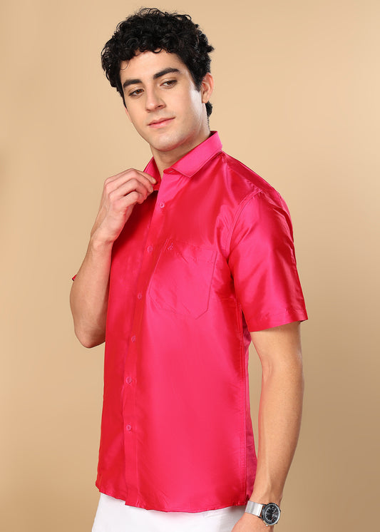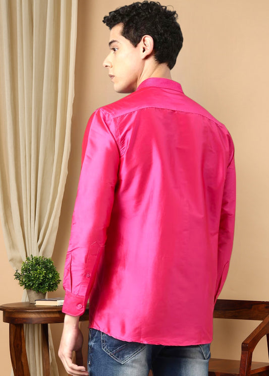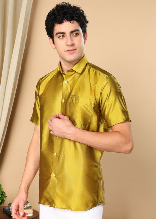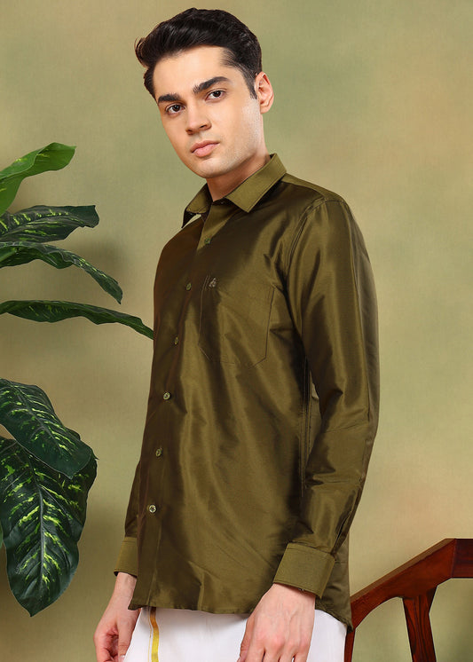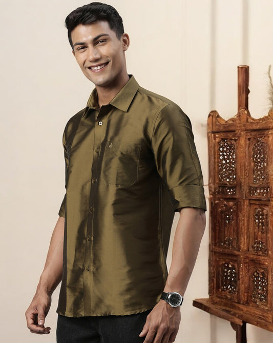 Green Color Art Silk Slim Fit Solid Party Shirt
