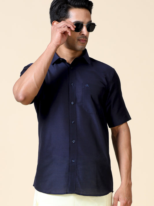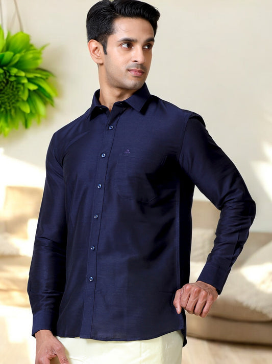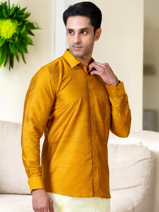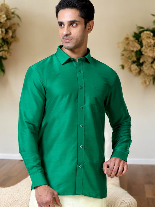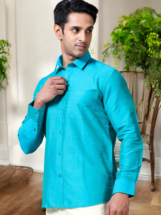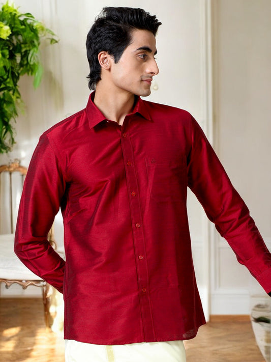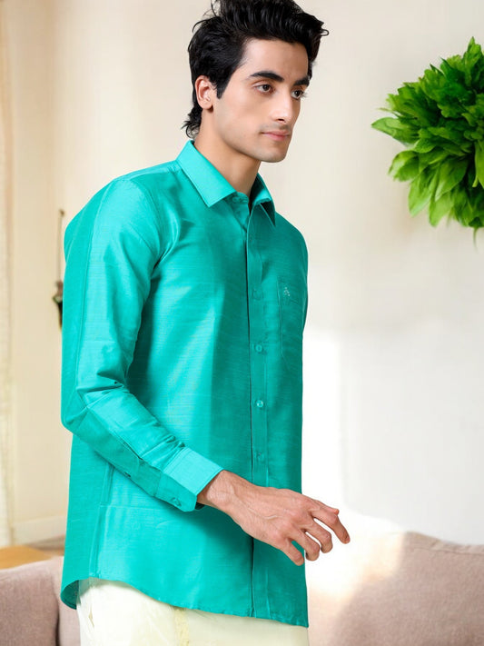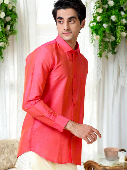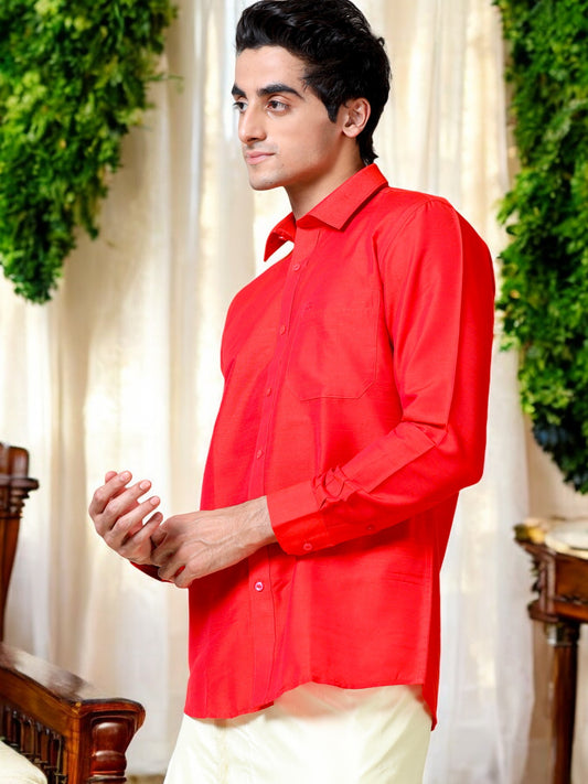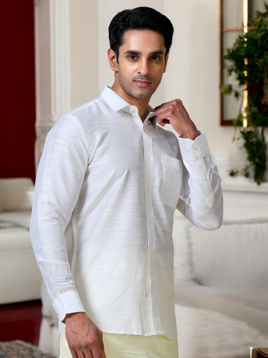 Tattva Men White Pure Silk Solid Opaque Shirt