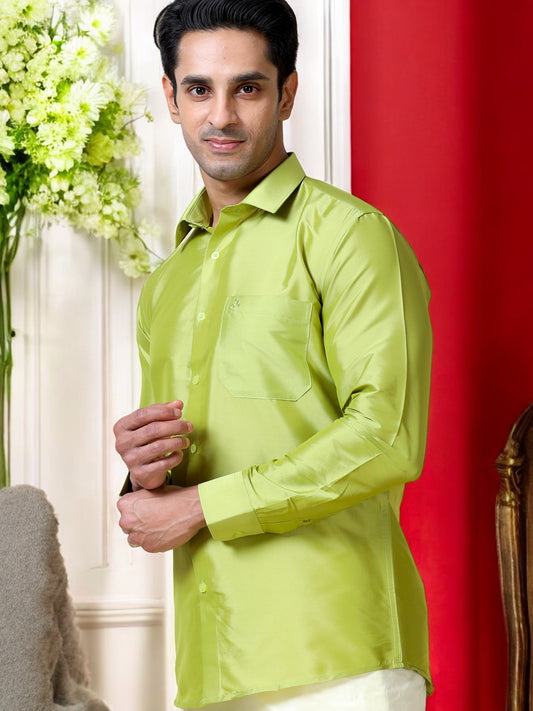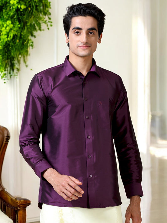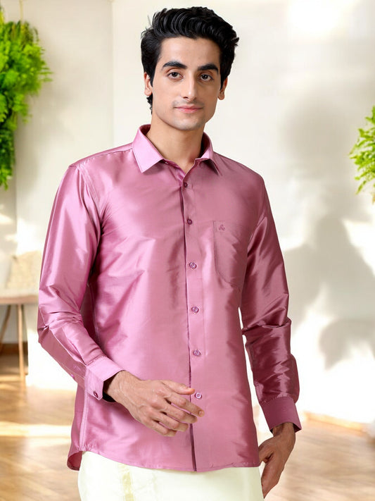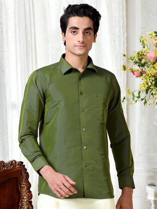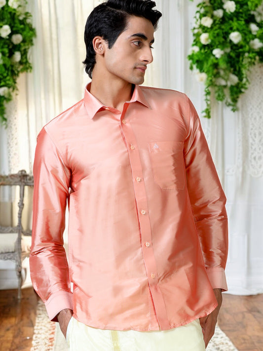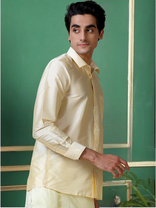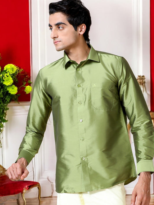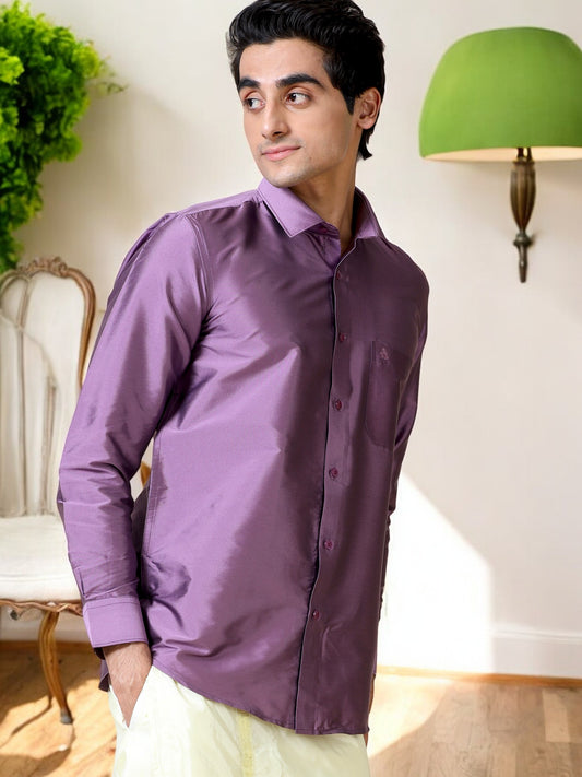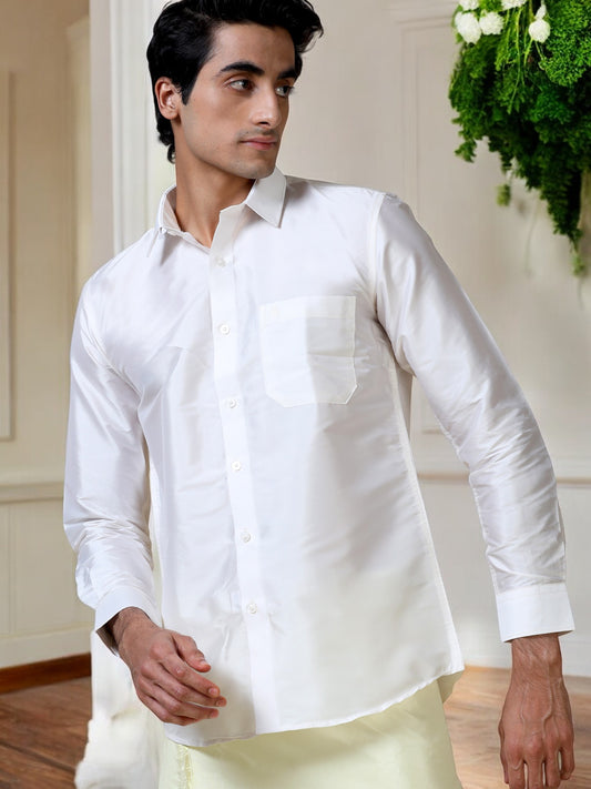 Tattva Men Silver Grey Pure Silk Solid Opaque Shirt