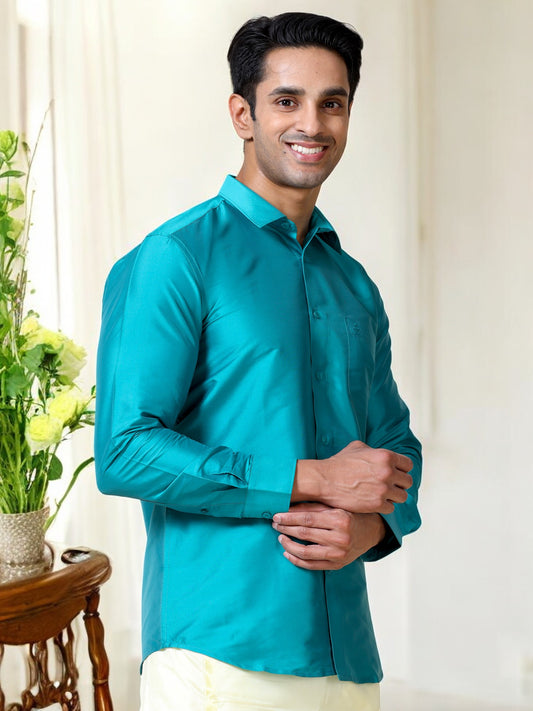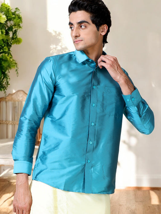 Tattva Men Royal Blue Toned Art silk Casual Shirt