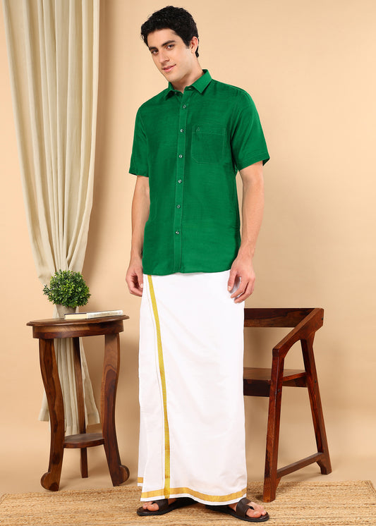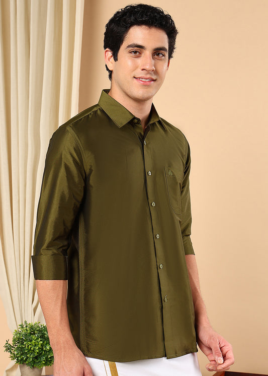 Tattva Men Green Pure Silk Solid Opaque Shirt
