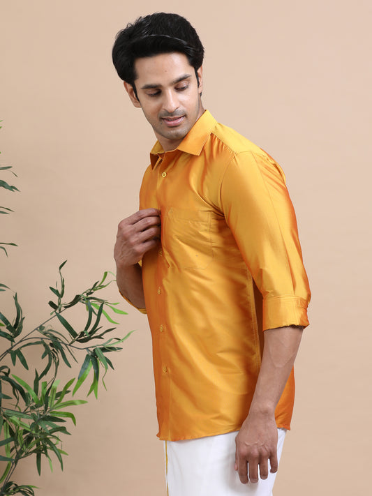 Tattva Men Gold Toned Art silk Casual Shirt