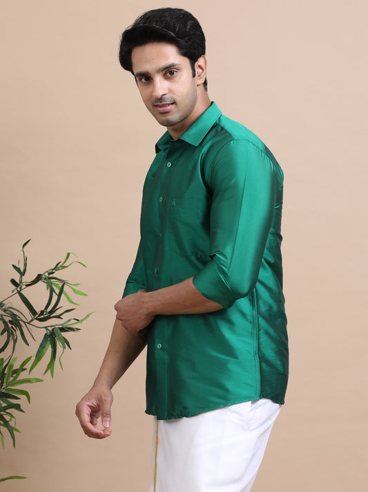 Green Color Art Silk Slim Fit Solid Party Shirt