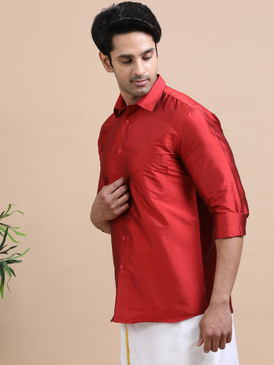 Tattva Men Maroon Toned Art silk Casual Shirt