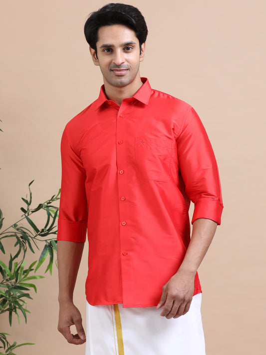Tattva Men Red Toned Art silk Casual Shirt
