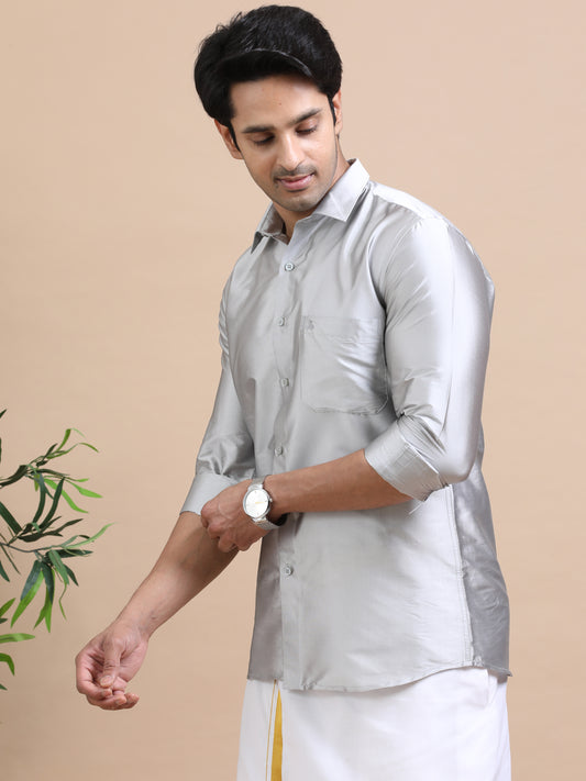 Tattva Men Grey Toned Art silk Casual Shirt