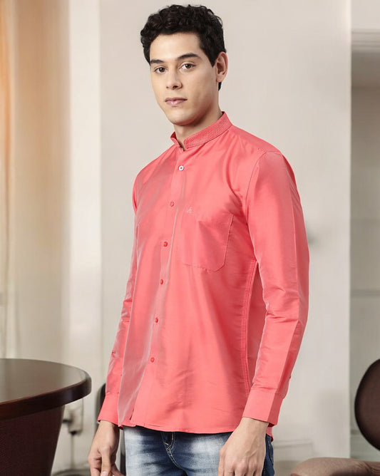 Peach Color Art Silk Slim Fit Solid Party Shirt