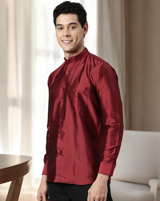 Maroon Color Art Silk Slim Fit Solid Party Shirt