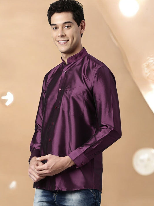 Purple Color Art Silk Slim Fit Solid Party Shirt