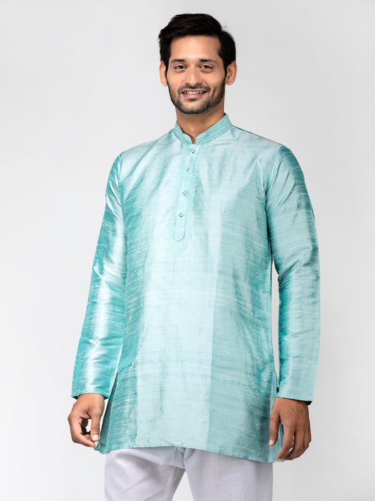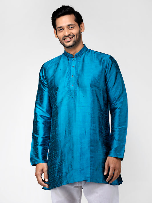 Turquoise Pure Raw Silk Kurta With Pyjamas