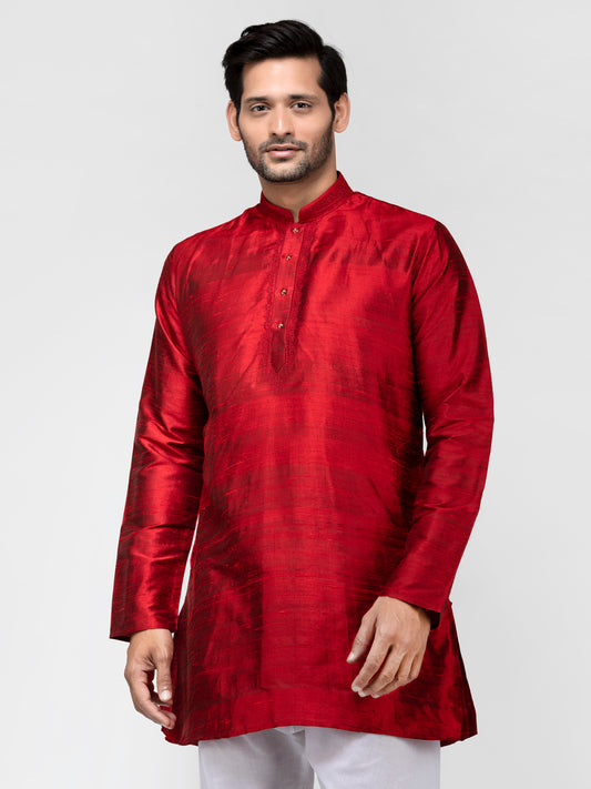 Maroon Pure Raw Silk Kurta With Pyjamas