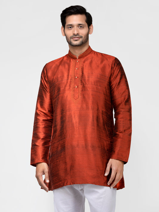 Orange Pure Raw Silk Solid Straight Short Kurta