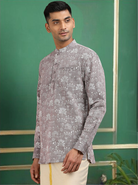 Tattva Men Grey Printed Super Short Kurta