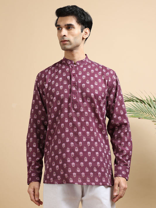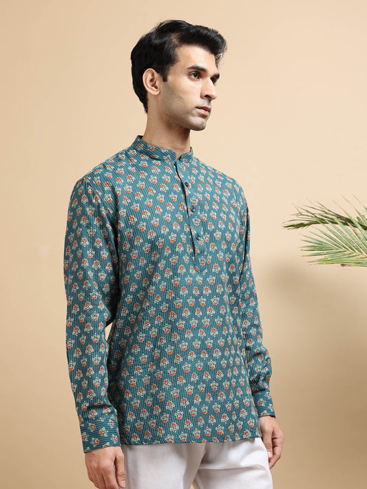 Tattva Men Floral Printed Woven Thread Super Short Kurta