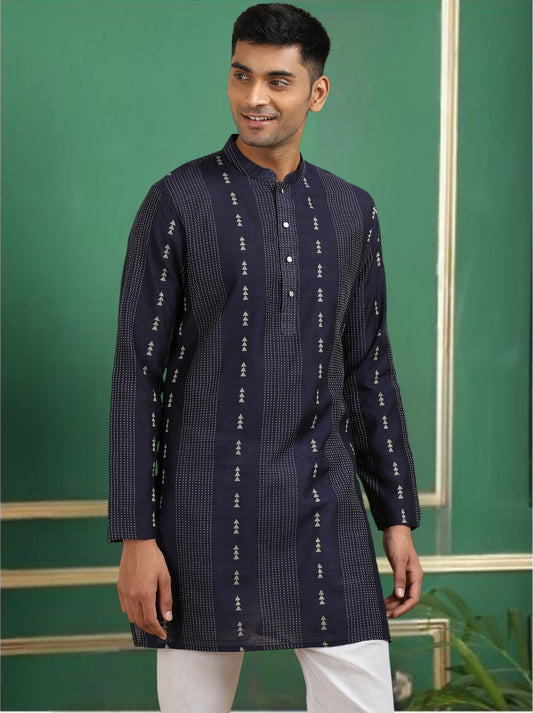 Tattva Navy Blue Toned Threadwork Short Kurta