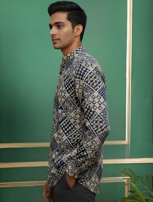 Tattva Men Cobalt Blue Toned Art silk Casual Shirt