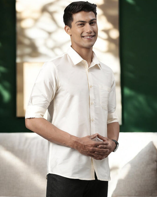 Tattva Mens White Colour Solid Party Shirt