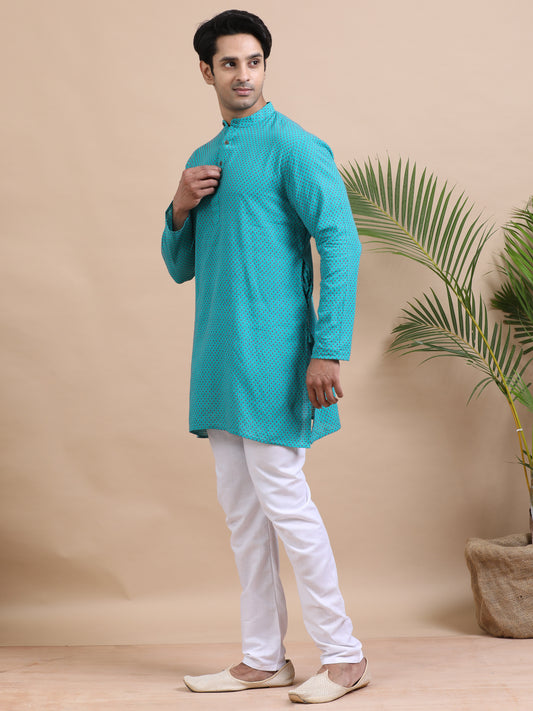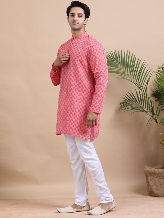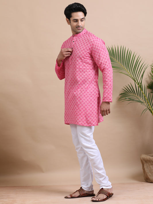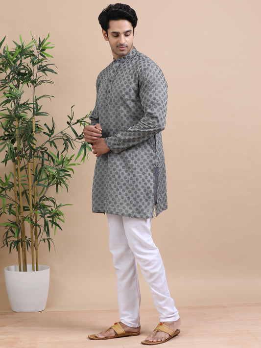 Tattva Woven Design Mandarin Collar Thread Work Cotton Straight Kurta
