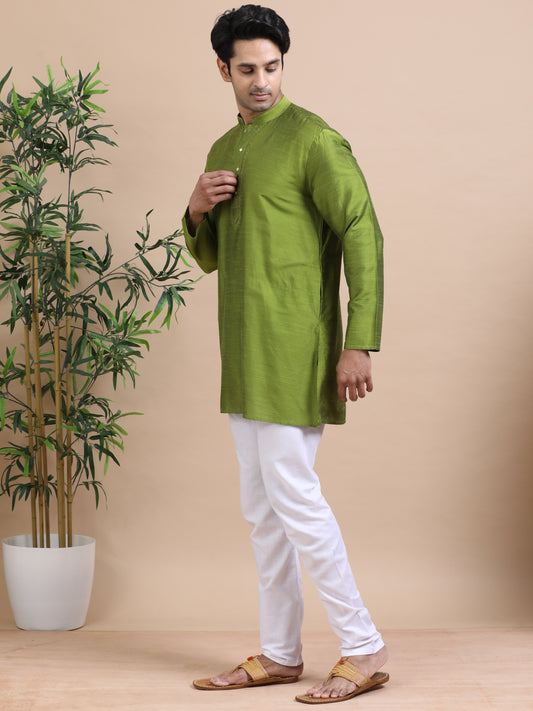 Tattva Solid Embroidered Mandarin Collar Short Kurta