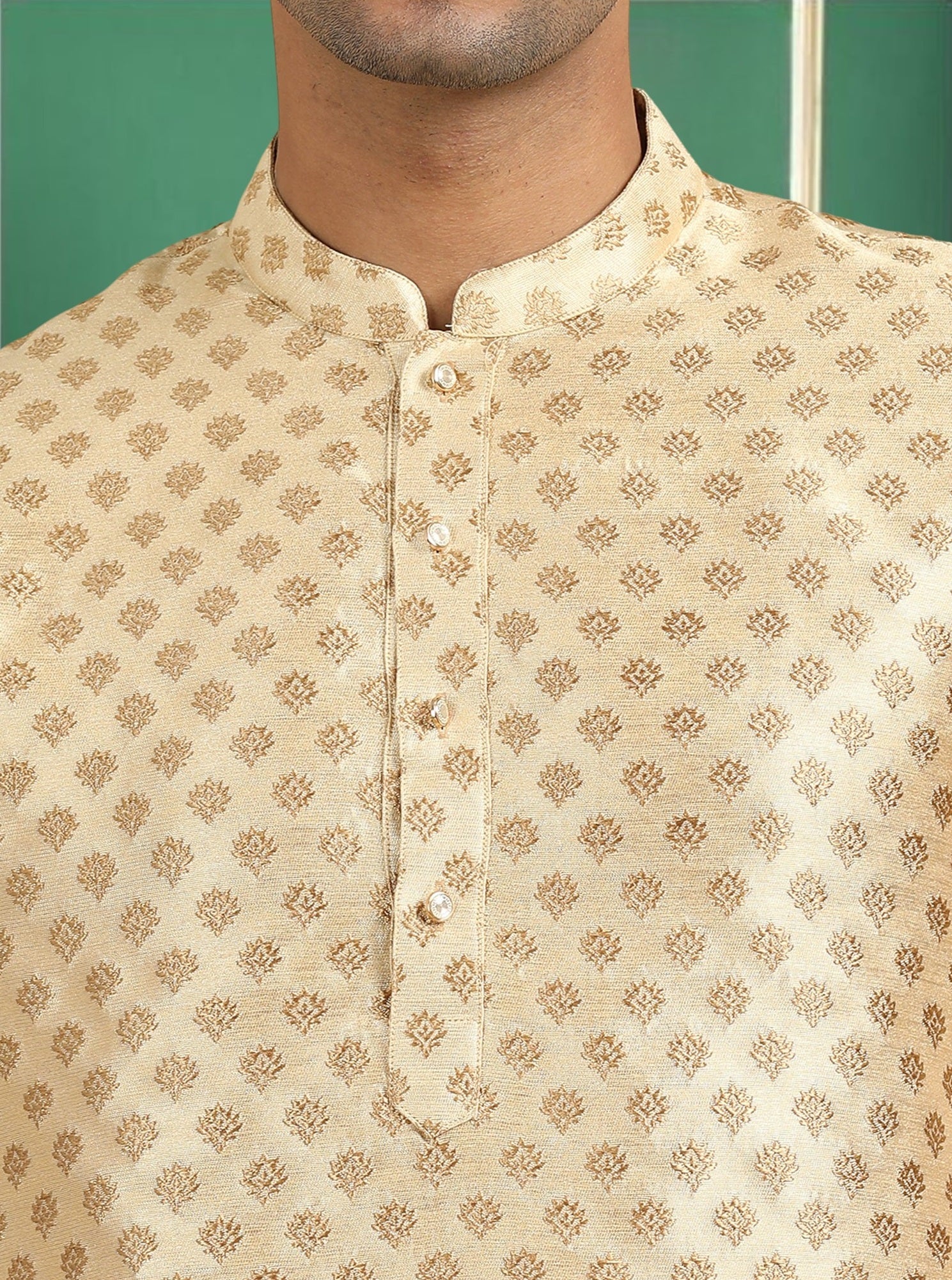 The Tattva Beige Toned Jacquard Short Kurta is a refined wardrobe essential that balances tradition with modern simplicity. Crafted from premium jacquard fabric, its subtle texture and neutral beige tone create a clean, sophisticated look. Designed for comfort with a short, easy-to-wear silhouette, this kurta is perfect for casual outings, festive gatherings, or everyday elegance. Versatile and timeless, it’s a stylish choice for those who appreciate quiet luxury and craftsmanship.