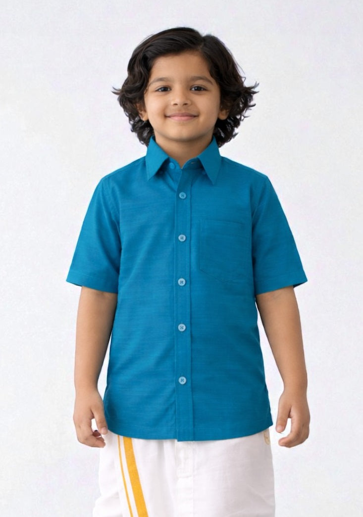 Soft, breathable solid cotton shirt designed for all-day comfort. Tailored in a regular fit, this classic shirt features a neat collar, button-down front and practical chest pocket. Lightweight and skin-friendly fabric makes it perfect for festive occasions, family outings, or everyday wear. Easy to style with dhoti, trousers, or jeans for a smart traditional or casual look.