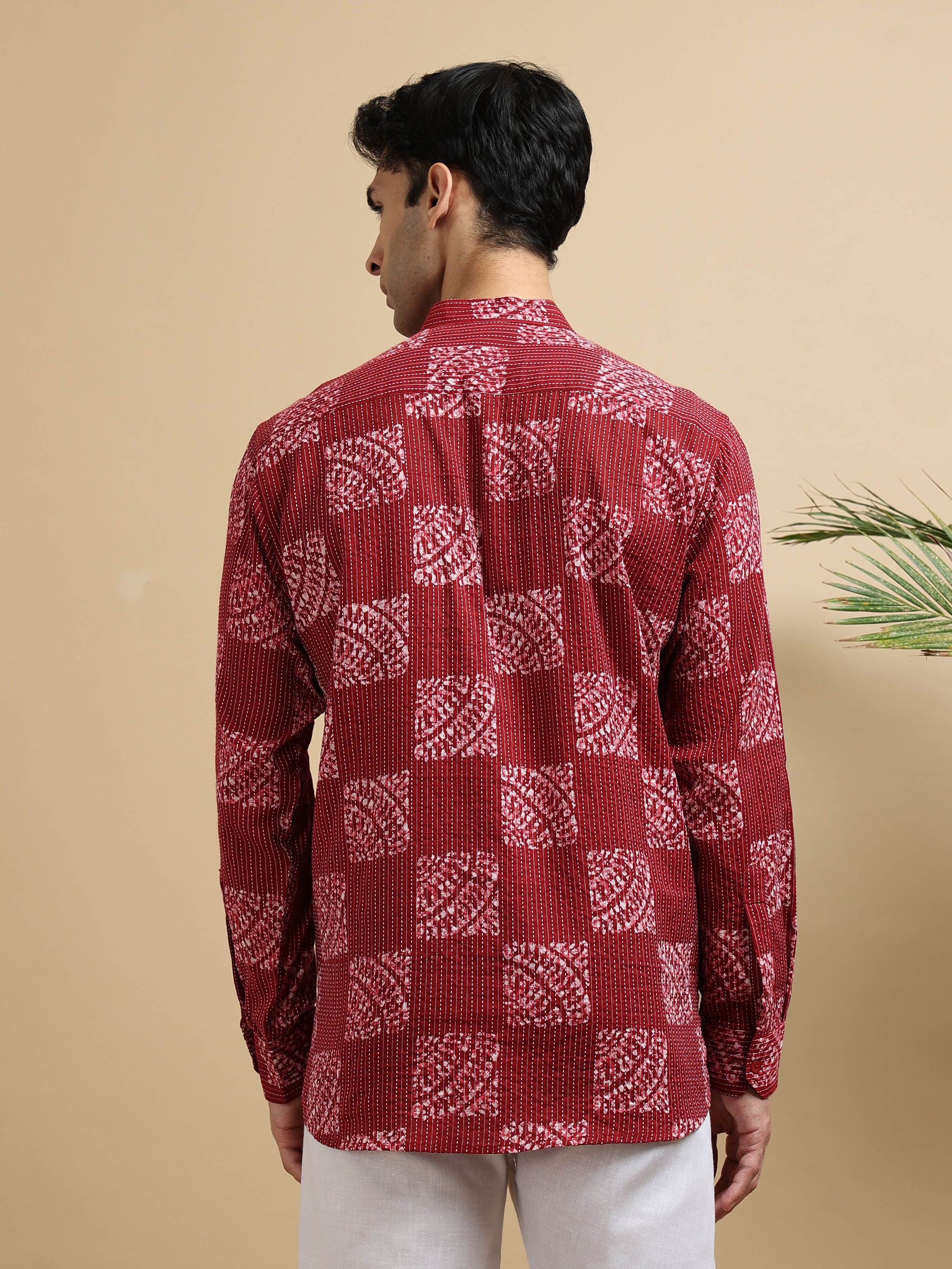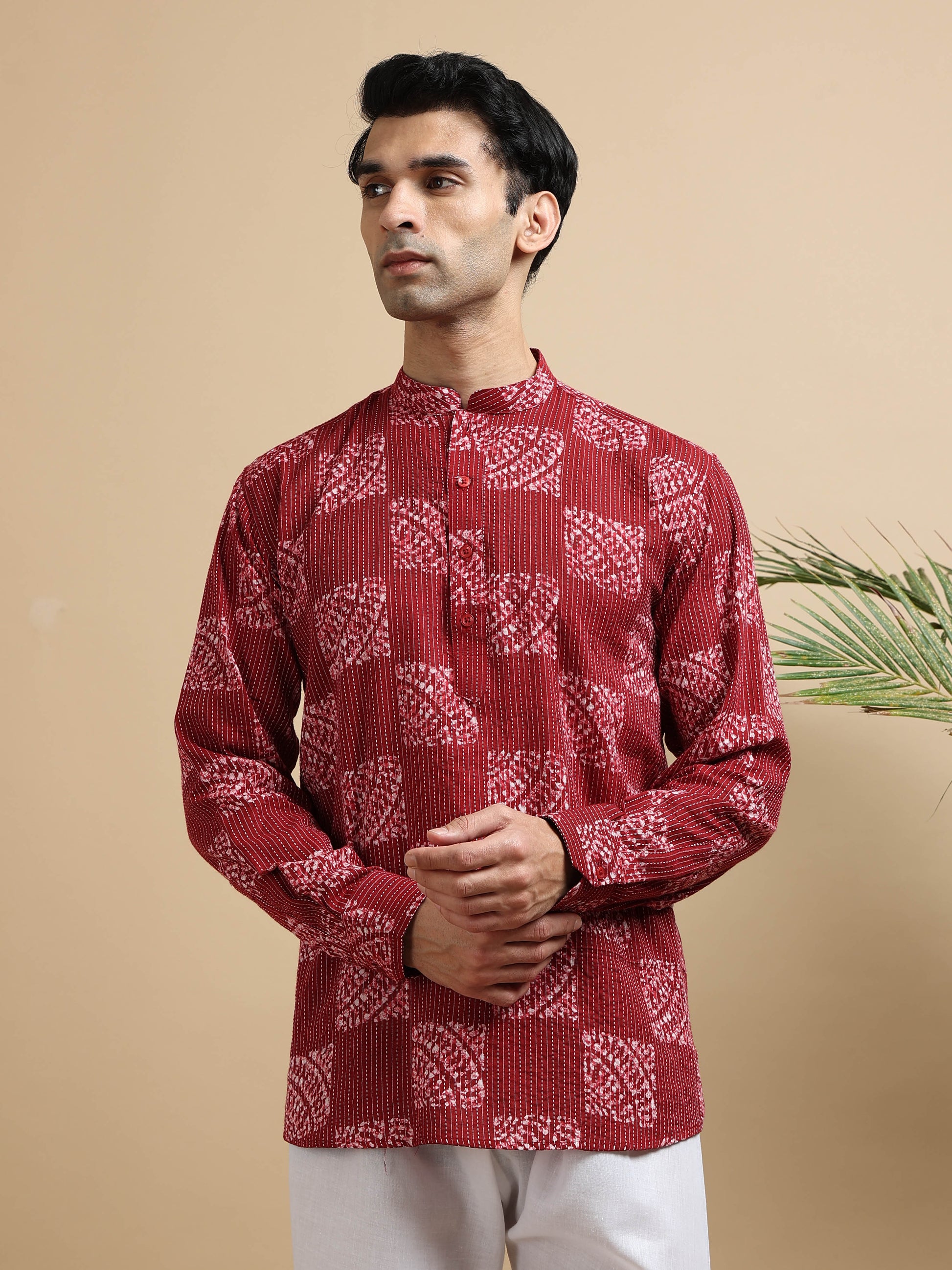 Tattva Men Blocks Printed Woven Thread Super Short Kurta