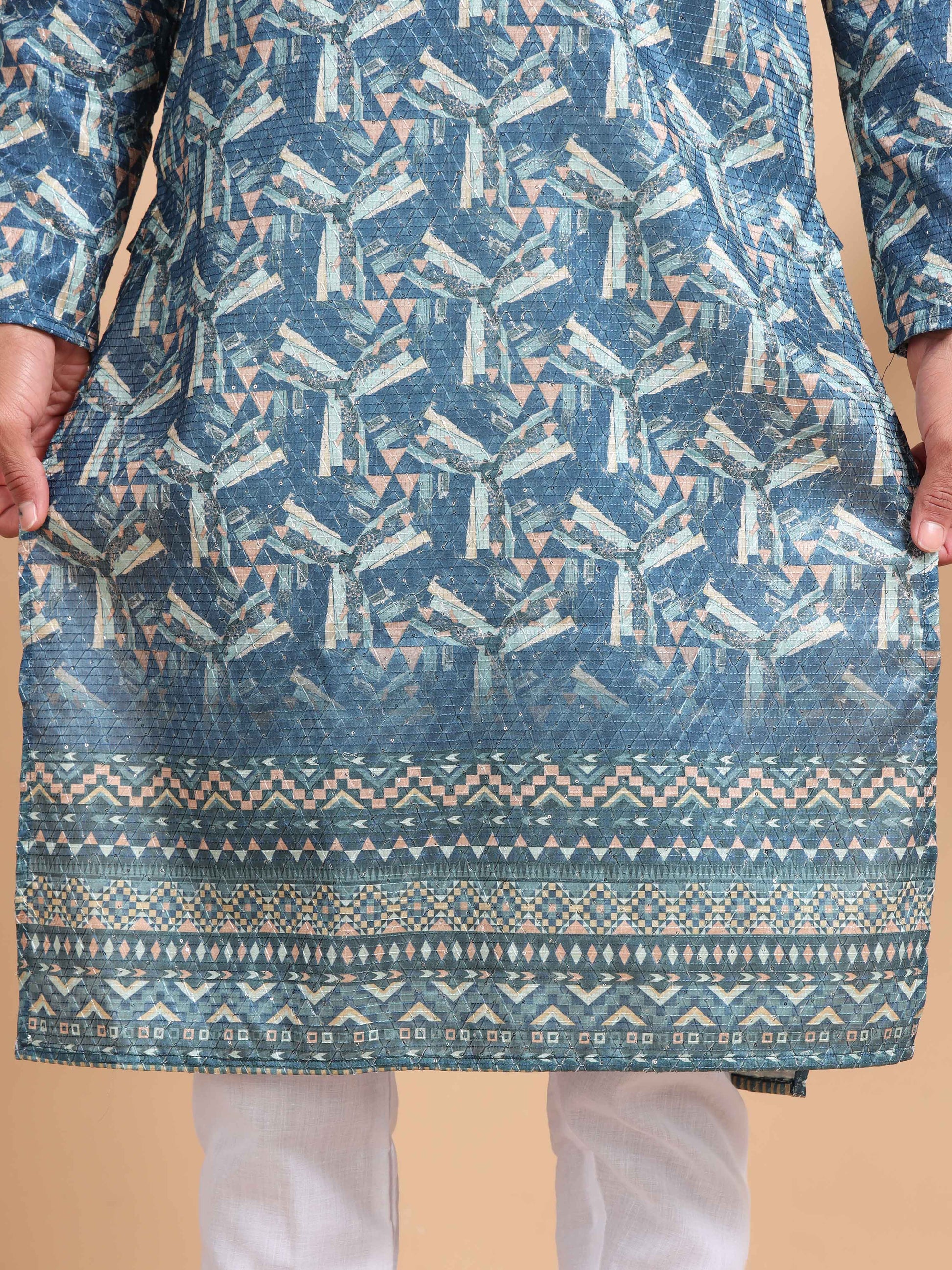 Make every occasion shine with the elegance of the Tattva Empire Sequined Long Kurta Set. Crafted from premium fabric, this outfit features intricate sequin embellishments that add a subtle sparkle, perfect for festive gatherings and celebrations. The long kurta’s refined silhouette pairs effortlessly with comfortable pyjamas, offering a blend of traditional grace and modern sophistication.