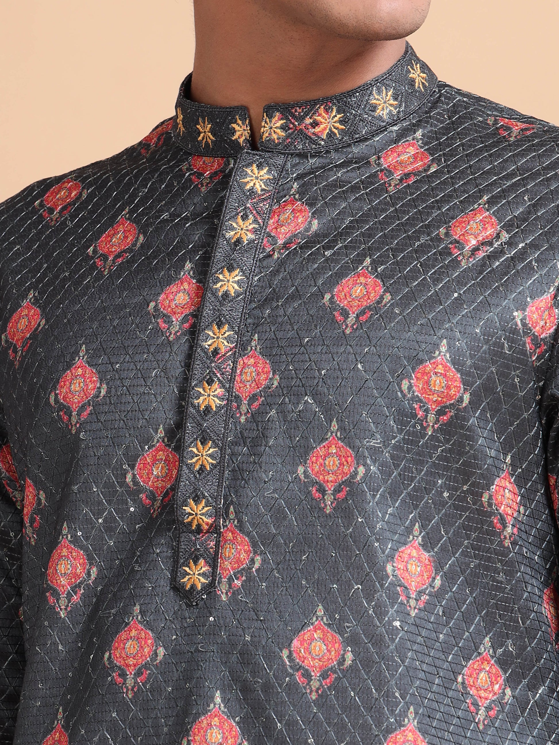 Make every occasion shine with the elegance of the Tattva Empire Sequined Long Kurta Set. Crafted from premium fabric, this outfit features intricate sequin embellishments that add a subtle sparkle, perfect for festive gatherings and celebrations. The long kurta’s refined silhouette pairs effortlessly with comfortable pyjamas, offering a blend of traditional grace and modern sophistication
