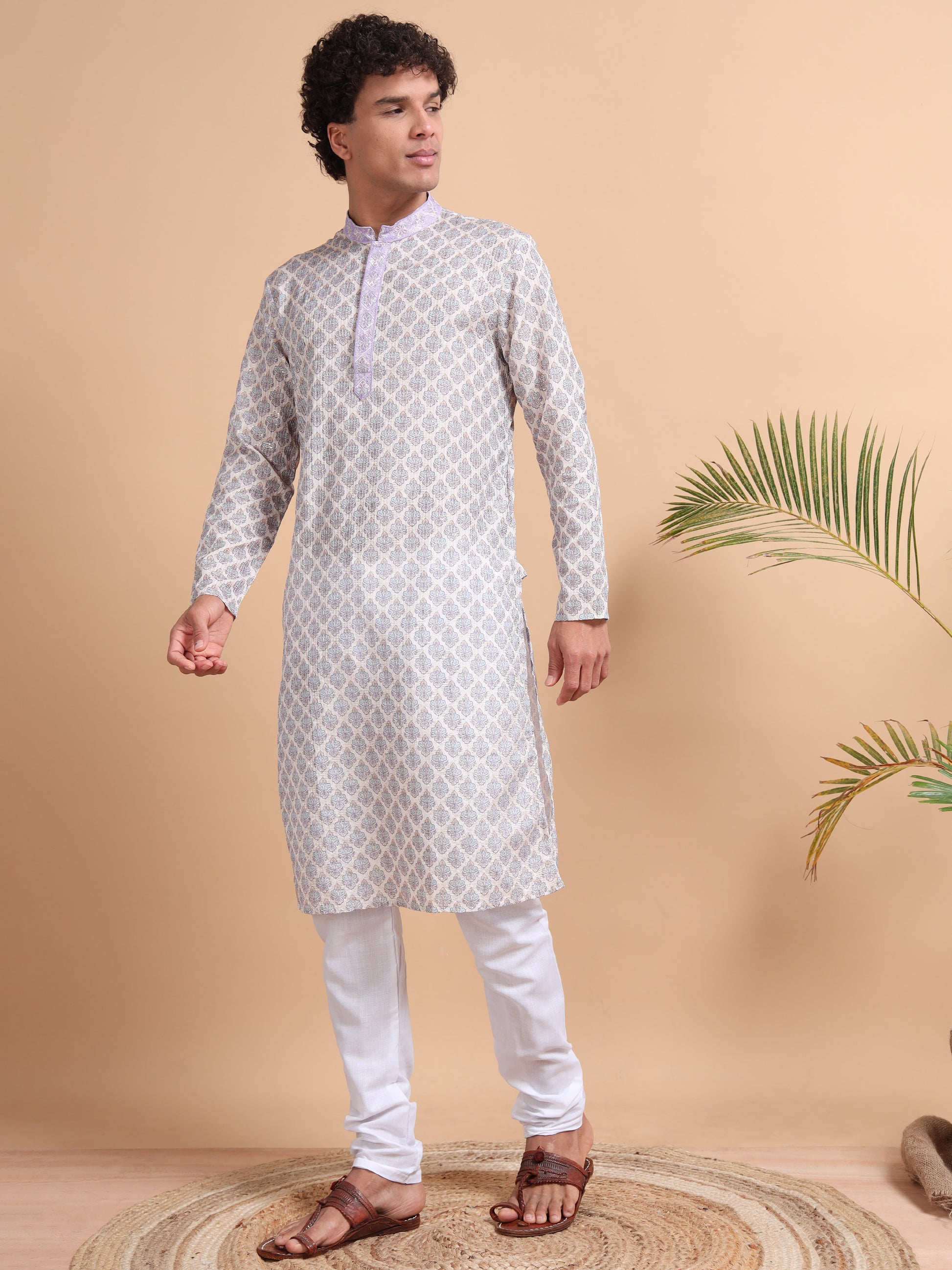 Tattva Men Ethnic Motifs Printed Regular Thread Work Kurta with Pyjamas