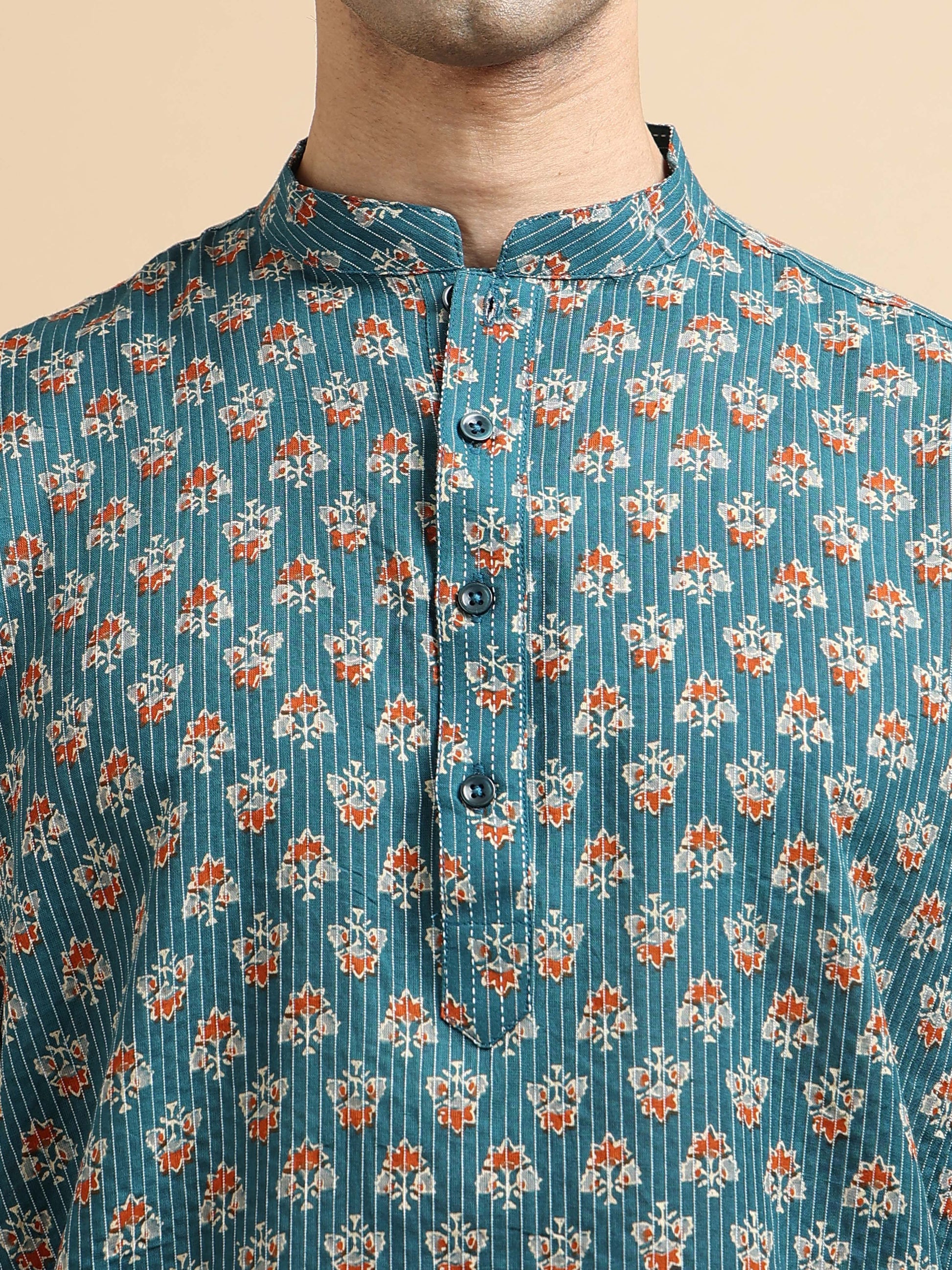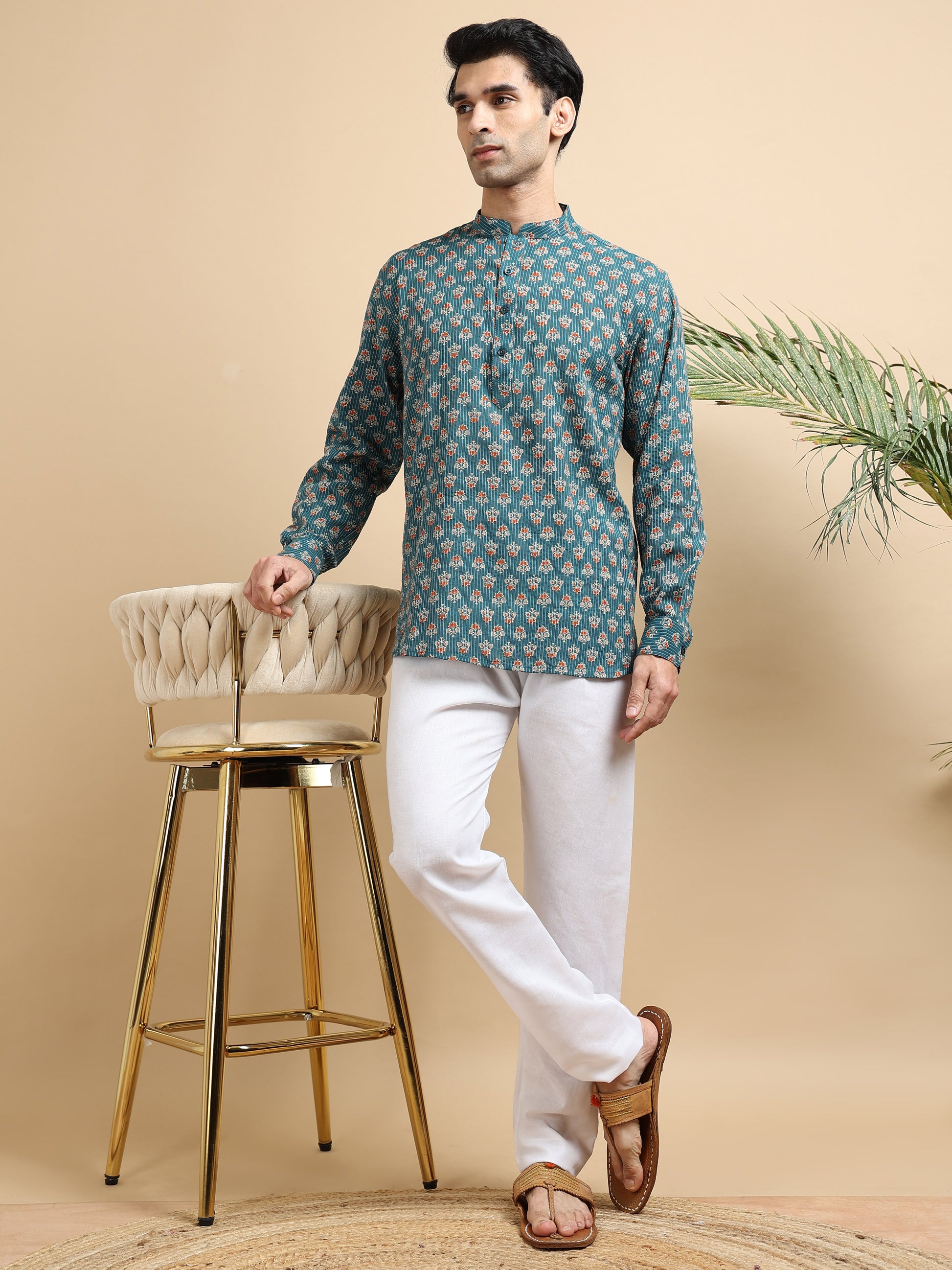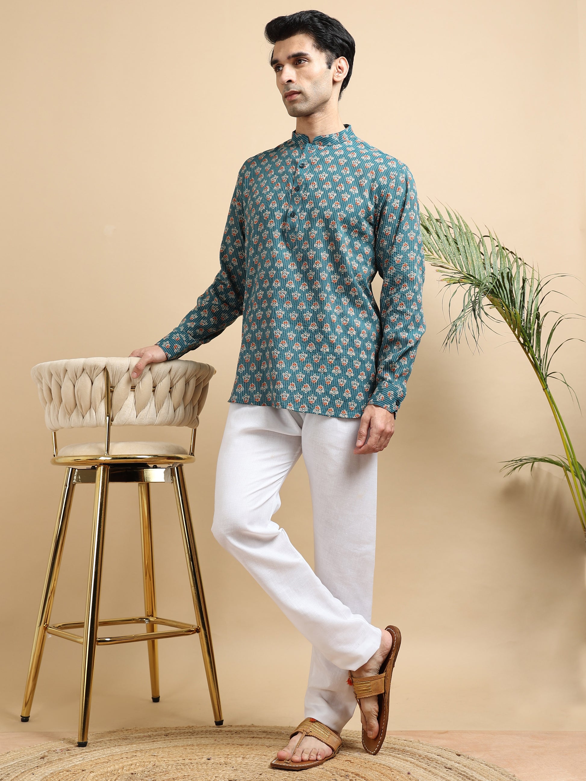 Tattva Men Floral Printed Woven Thread Super Short Kurta