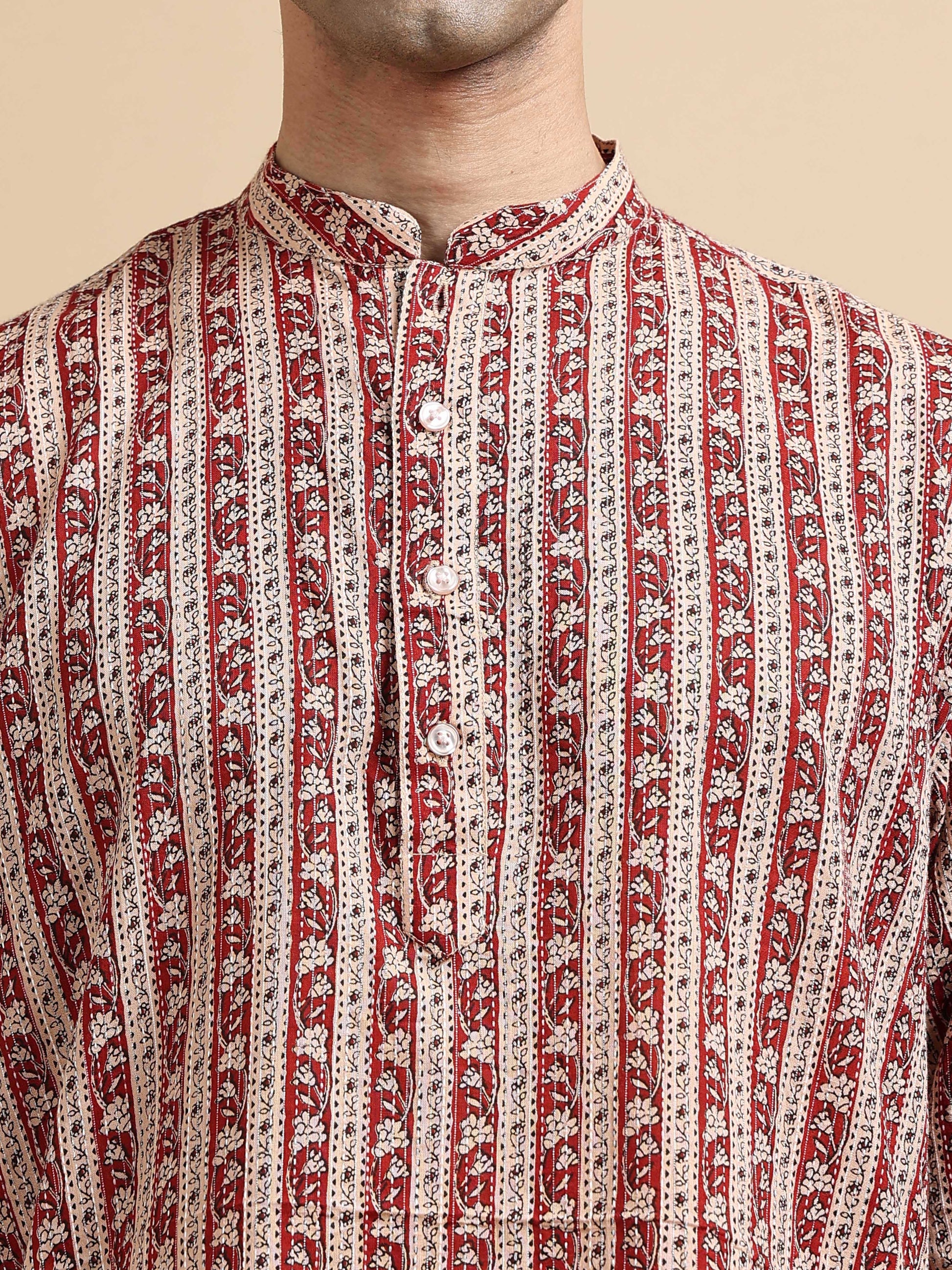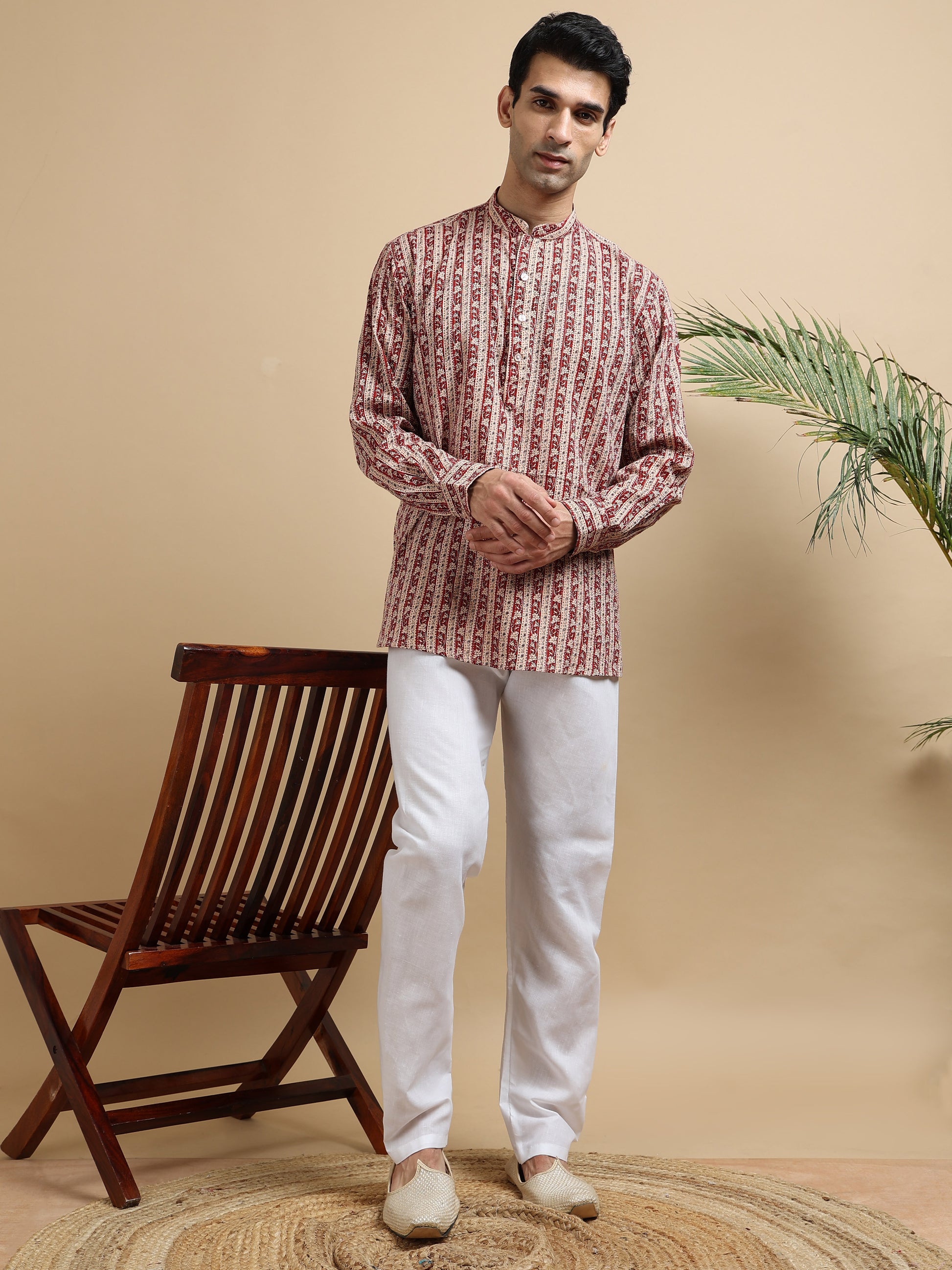Tattva Men Floral Printed Woven Thread Super Short Kurta