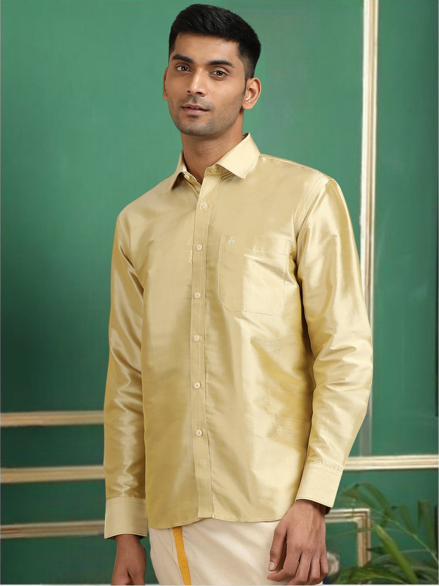 Flaunt your Formal/Festive looks with this solid Pure Silk shirt for any occasion and leave a persisting impression wherever you go. This Piece comes in full sleeves, a Straight Hem, and a patch pocket.